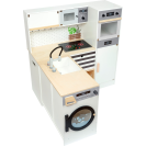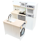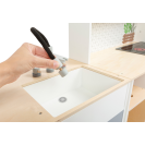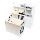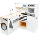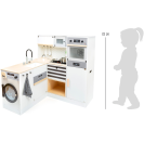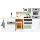 Pro všechny kuchaře a hospodyně! Tato velká, plně vybavená dětská kuchyňka nabízí všechny spotřebiče moderní domácnosti. Díky svému stavebnicovému systému lze sestavit jako rohovou kuchyň, nebo kuchyňskou linku s fungujícím ostrůvkem, nabízí tak mnoho prostoru a možností i pro hru více dětí najednou. Otočné knoflíky cvakají a varná deska s bateriově napájeným (baterie nejsou součástí balení) světlem a zvukem zaručují realistické potěšení ze hry. Skříňky zajišťují dostatek úložného prostoru a jsou vybaveny dvířky. Součástí je vysoce kvalitní nádobí vyrobené z kovu. Pro kuchyňku se nabízí také velké množství doplňkového příslušenství. Výrobek vyžaduje montáž, dodáváno s obrázkovým návodem k sestavení.