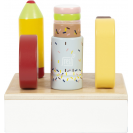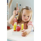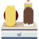 Sada nanuků pro malé prodavače zmrzliny. Tento praktický stojan na zmrzlinu s otvory pro 6 různých příchutí přináší osvěžující pocit ze zmrzlinárny do obchodu s potravinami nebo do dětské kuchyňky. Zajišťuje také, aby byly studené pochoutky podávány ve správném stylu. Každá jednotlivá zmrzlina je vyrobena z certifikovaného dřeva FSC® a vypadá velmi podobně jako její skutečné protějšky. Jemné zbarvení a vysoký podíl viditelného dřeva dělají z tohoto herního setu opravdový poutač v dětském pokoji.