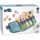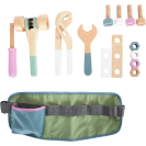 Praktický, nastavitelný opasek na nářadí. S příslušenstvím složeným z děrovaných kusů, šroubů a matic. Nastavitelný dřevěný hasák a ráčna jsou dokonalým doplňkem šroubováku a klíče. Smyčky různých velikostí nabízejí prostor pro všechny zahrnuté nástroje. Nenápadné, skandinávské barevné schéma se spoustou viditelného dřeva; stejně atraktivní pro dívky i chlapce. Přezka se snadno otevírá a zavírá. Skvěle se hodí k dalším výrobkům z produktové řady Nordic.