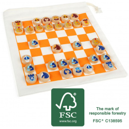 Je to v kapse! Není nic lepšího než partička šachu během cestování. Bavlněný pytlík má potisk šachovnice, takže slouží zároveň jako herní pole i úložný prostor pro herní dílky, které jsou vyrobené ze 100% FSC® certifikovaného dřeva. Můžete také použít pro hru dámy.
