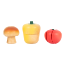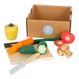 Je opravdu důležité naučit se správnou techniku krájení, s touto hračkou to půjde jako po másle. Paprika, žampion, rajče, okurka a mrkev – v této sadě je vše! Přirozeně vypadající a detailní zelenina drží dohromady pomocí suchého zipu. Díky udržitelnému obalu se děti naučí něco nového o ekologii. Krájecí prkénko lze díky oka pověsit.
