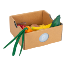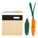S touto sadou krájecích potravin z robustního dřeva si mohou děti hrát na šéfkuchaře! Skládá se z běžných potravin, které děti bez problému poznají. V balení prkénko na krájení, dřevěný nůž, znovupoužitelný obal, který lze použít k úschově hračky. Na jednu stranu prkénka lze psát křídou, zapište si nákupní seznam nebo recept.