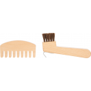 Taška s příslušenstvím na čištění a péči o koně. Je vhodná pro všechny děti, které mají rády koníky. Taška je odolná, praktická a dostatečně prostorná, aby pojala veškeré vybavení. Péče o koně je součástí každodenní rutiny každého fanouška koní a koníci kartáčování milují. Taška s doplňky je vyrobená z vysoce kvalitních materiálů a máte vše, co potřebujete, hned po ruce, i když jste na cestách. Mezi doplňky patří kartáč, hřeben, škrabka na kopyta a hřeben na hřívu, to vše se vejde do prostorného vnitřku tašky a do malé boční kapsy. A samozřejmě nechybí dřevěné jablko a mrkev. Sada se dodává s turnajovou stuhou, kterou si děti mohou připevnit na obojek hlavy svého koníka nebo na vlastní oblečení.