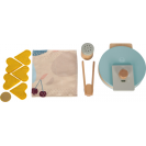 Dali by ste si vafle? So sadou na prípravu vaflí s bohatým príslušenstvom to nebude žiadny problém. Váš malý kuchár alebo kuchárka môžu pripraviť naraz až päť vaflí v tvare srdca. Sú vyrobené z látky, uprostred spojené suchým zipsom a vyzerajú ako skutočné. Pri otáčaní gombíka na vaflovači sa farba kontrolky mení z červenej na zelenú a kuchár tak spozná, či už sú vafle správne prepečené. Súčasťou sady je látkový obrúsok, kliešte a cukornička na posypanie vaflí, ktorá pri sypaní vydáva štrkavý zvuk.