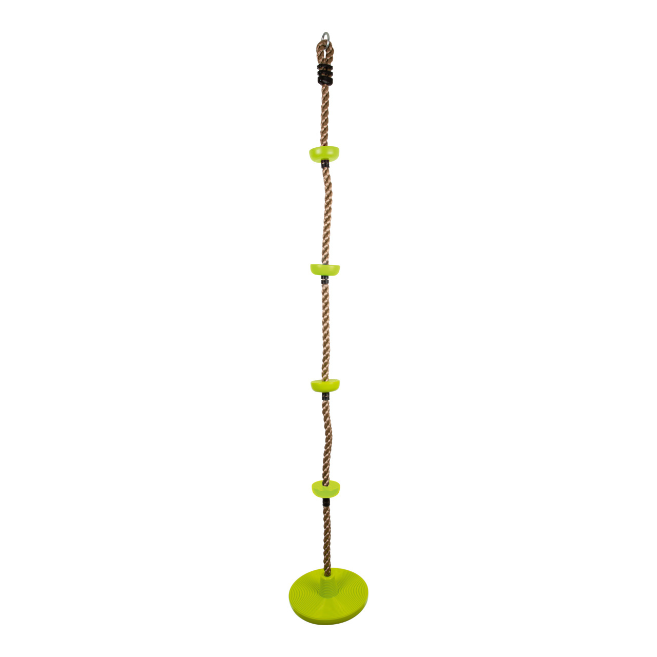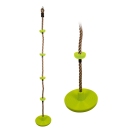 Toto multifunkční šplhací lano je vybaveno nášlapnými body, které jsou vyrobeny z robustního plastu. Čtyři pestře zelené body a úplně dole větší disk, na kterém se děti mohou houpat. Nášlapné body a disk mají žebrování, aby bylo hraní bezpečnější. V balení také oko, za které můžete lano zavěsit. Šplh trénuje ovládání těla, rovnováhu a sílu. Zábava domů i na zahradu.