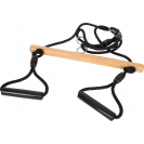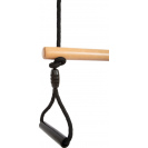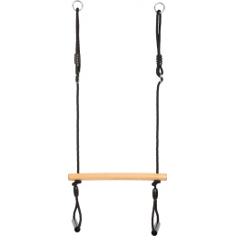 Houpání nebo gymnastika? S tímto setem zvládnete obojí. Tento inovativní set kombinuje klasickou houpačku s gymnastickými kruhy, což poskytuje více možností pohybu a zábavy. Zatímco trapézovou tyč lze použít jako sedák nebo gymnastickou tyč, gymnastická madla nabízejí malým akrobatům možnost vyzkoušet si, co chtějí. Ideální pro začátečníky v gymnastice. Robustní lana jsou výškově nastavitelné. Kovové kroužky umožňují houpačku rychle zavěsit i sundat. Trapéz je vyroben z robustního masivního dřeva, lana z materiálu odolného vůči povětrnostním vlivům, ideální také pro venkovní použití. Kombinace houpačky a s gymnastickými kruhy trénuje ovládání těla, sílu a rovnováhu. Interakce vysoce kvalitního masivního dřeva a elegantních, černých plastových lan dělá z multifunkční houpačky opravdový poutač uvnitř i venku.