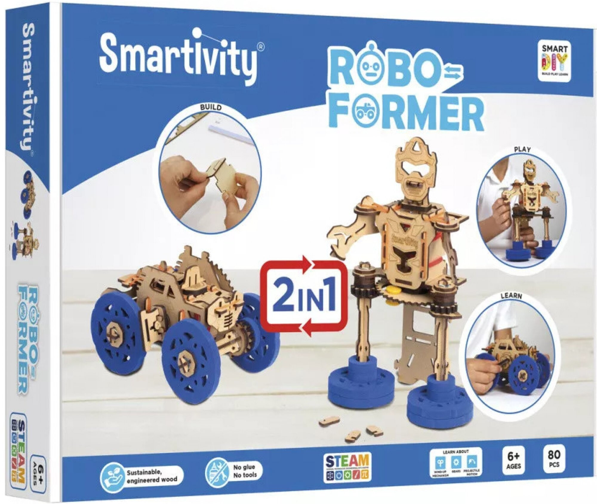 Stavebnice Smartivy Roboformer 2v1 je snem každého malého technika a budoucího inženýra. Přináší unikátní možnost stvořit z jednoho setu dvě fascinující hračky – terénní auto a robota. Pokud se dětem jeden model omrzí, mohou jej snadno transformovat na druhý, což podněcuje jejich fantazii a udržuje zájem o hraní.