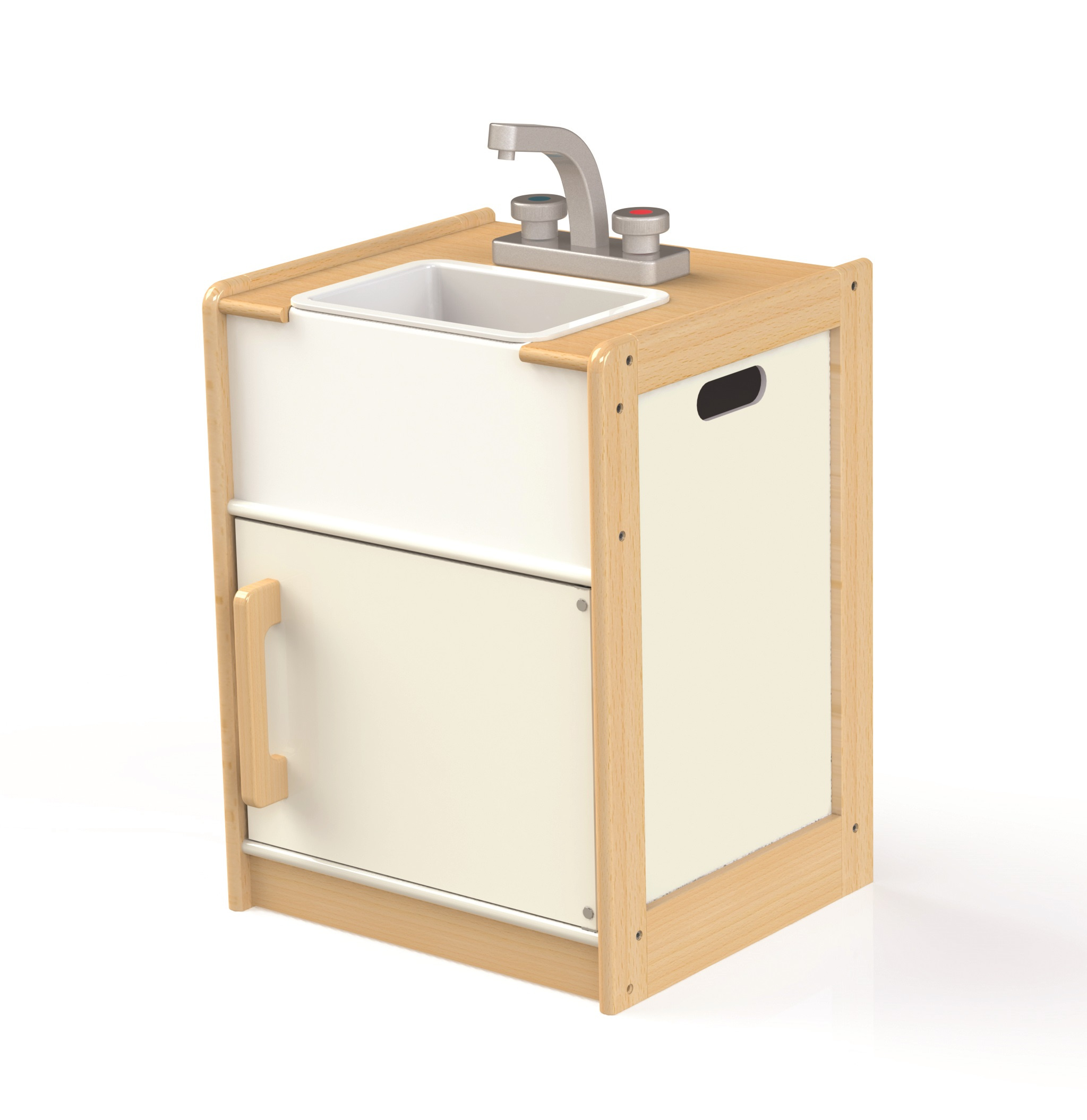 Žádná kuchyň není kompletní bez dřezu, ve kterém by se dalo umýt všechno špinavé nádobí. Tento dřevěný dřez obsahuje kohoutek, otevíratelné přední dveře a úložné místo pod dřezem, kde děti mohou uložit houbičky, saponáty a jiné věci, které potřebuje každá kuchyň. Zároveň je možno vyjmout plastové umyvadlo a lehce jej omýt! Skvělý způsob jak děti naučit, že po jídle je důležité po sobě uklidit. Na boku má rukojeti k lehčímu uchopení. Podporuje kreativní a představivou hru. Kombinujte s ostatními Tidlo kuchyňskými spotřebičemi a vytvořte hravou kuchyň! Po vybalení je nutno složit. Vyrobeno z kvalitních materiálů z odpovědných zdrojů. Odpovídá evropské bezpečnostní normě.
