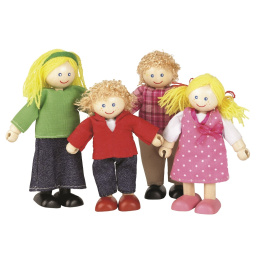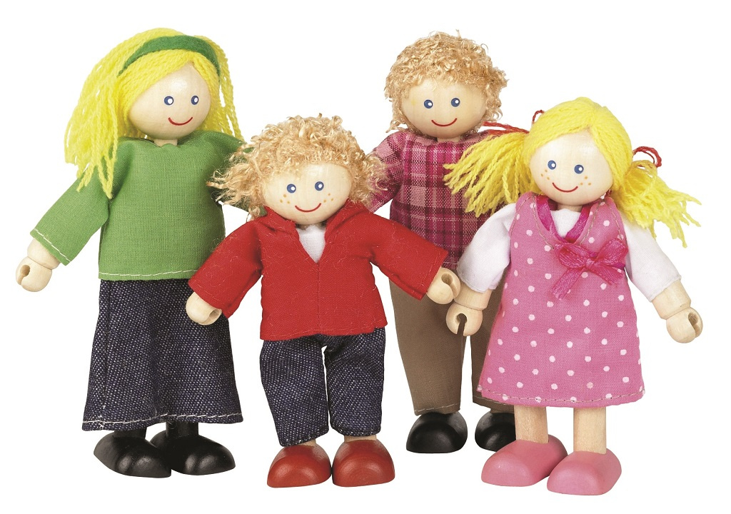 Čtyřdílná dřevěná rodina panenek připravená a čekající na všechna dobrodružství, která pro ně malé děti připraví! Díky flexibilním, pohyblivým rukám a nohám může každá z postaviček stát nebo sedět, což znamená, že žádné dobrodružství při hraní není mimo hranice! Sada obsahuje mámu, tátu a jejich dvě děti (syna a dceru), které se touží přestěhovat do nového domova. Skvělý doplněk do každého dřevěného domečku pro panenky. Skvělý způsob, jak podpořit nápadité vyprávění a kreativní hru. Rozvíjí koordinaci ruka-oko, jemnou motoriku a obratnost. Vyrobeno z vysoce kvalitních a zodpovědně pocházejících materiálů. Vyhovuje současným evropským bezpečnostním normám.