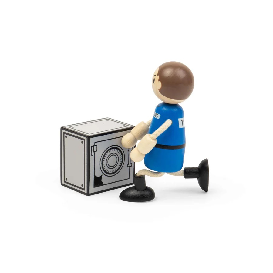Vydejte se na akční honbu za zločinci s touto hravou sadou policistů a vězně. Sada obsahuje tři figurky policistů, jednu figurku vězně a dřevěný trezor, který dodá hře na napětí a realističnosti. Figurky jsou oblečeny do tematických outfitů a mají ohebné ruce a nohy, takže děti mohou snadno přehrávat různé situace - od dopadení pachatele až po jeho hlídání. Díky tomu si užijí spoustu zábavy při vymýšlení vlastních příběhů. Hra s figurkami podporuje rozvoj fantazie, sociálních dovedností i schopnosti řešit problémy. Děti si přirozeně osvojují různé role a lépe porozumí světu kolem sebe. Sada je vyrobena z kvalitního FSC® certifikovaného dřeva a barvena netoxickými barvami a laky, takže je bezpečná i pro menší děti.