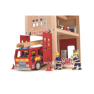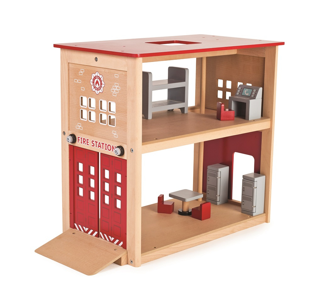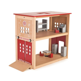 S touto krásnou dřevěnou hasičskou stanicí budou děti zapáleny do hry plné představivosti. Skvělá hračka pro mladé nastávající hasiče. Tento set obsahuje skluzovou hasičskou tyč, šikmou rampu, otevíratelnou bránu, dvě skříňky, stůl, tři židle, stůl pro dispečink a poschoďovou postel. Tato hasičská stanice ma mnoho detailů a její otevřený design je ideální pro hru více dětí. Rozvíjí koordinaci ruka-oko, jemnou motoriku a zručnost. Podporuje kreativitu a představivost dětí. Vyrobeno z kvalitních materiálů z odpovědných zdrojů. Odpovídá evropské bezpečnostní normě. Stanice musí být po vybalení smontována. Figurky prodávány zvlášť.