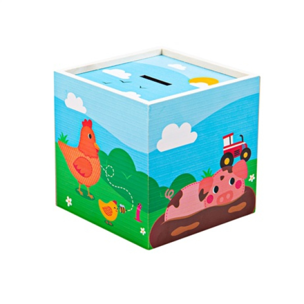 Rozměry: 12x12x12 cm Věk: 3+ Materiál: dřevo Vyzvěte malé děti, aby šetřily, a naučte je o důležitosti úspory peněz pomocí této rozkošné kasičky s motivem farmy. Díky barevné scéně na farmě je tato pokladnička skvělým doplňkem do každé školky či pokojíčku. Ideální pro ukládání mincí i bankovek. Skvělý dárek. Vyrobeno z vysoce kvalitních a zodpovědně pocházejících materiálů. Vyhovuje současným evropským bezpečnostním normám. Dvěděti.cz s.r.o., Sadová 618, 738 01 Frýdek-Místek , dvedeti@dvedeti.cz