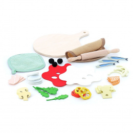 Stejně dobrá pizza jako v Itálii? Žádný problém. Co na ni jen dám? Rajčata, šunku, žampióny..? Jako správný výrobce pizzy si Vaše dítě vyválí těsto, položí ho na desku na pizzu a naaranžuje ingredience podle své kreativity. Hmm.. i plyšáci a panenky si přijdou na své.