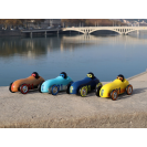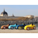 Neobyčejné autíčko oblých aerodynamických tvarů v jedinečném designu, které je určeno ke hraní i jako atraktivní doplněk interiéru či sběratelský kousek. Při hře s autíčkem využívá dítě mnoho dovedností: jemnou motoriku, obratnost, představivost, kreativitu. Může reprodukovat zvuky motoru nebo sirén, parkovat do garáže, projíždět se. Hraním s ostatními dětmi nebo členy rodiny se učí sdílet, spolupracovat a napodobovat, čímž rozvíjí důležité sociální dovednosti. Autíčko je vyrobeno z masivního bukového dřeva, lakováno ručně bezpečnými barvami tradičním procesem ponoření do lázně s barvou. Vyrobeno ve Francii, dodáváno v potištěné krabičce.