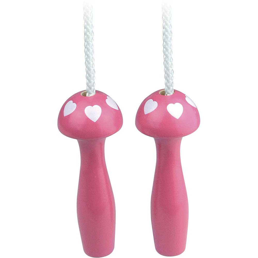 Veselé švihadlo, které má rukojeti ve tvaru hříbku. Lakované dřevo ve fuchsiové barvě. Velké tak akorát pro dětské ruce. Vyrobeno ve Francii.