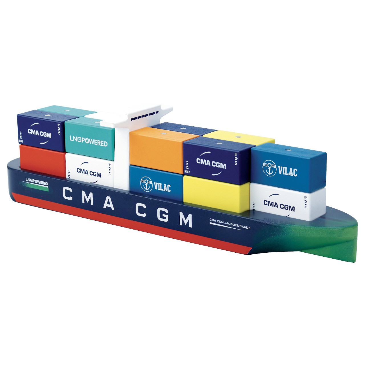 Barevná dřevěná nákladní loď s magnetickými kontejnery je replikou lodi Jacques Saadé, první lodě využívající k pohonu kapalný zemní plyn (LNG). Hračka byla vyrobena ve spolupráci s čelní francouzskou přepravní společnosti CMA CGM. Je součástí Vilacity kolekce a je se všemi jejími součástmi plně kompatibilní, další samostatná rozšíření přinesou variabilitu a prohloubí zážitek ze hry.