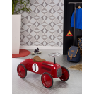 Odrážedlo Vintage ve stylu závodního auta je plně kovové a má červenou metalickou barvu. Volant ovládá zatáčení předních kol. Hnědé sedadlo je vyrobeno z plastu. Kola odrážedla jsou pogumovaná a zaručují tak tichý chod i na pevném povrchu.