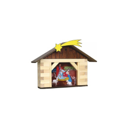 Drevená zlepovacia stavebnica obsahuje drevené hranolky daných dĺžok na stavbu zrubových stien, diely na strechy a štíty, kartónové výseky okien a dverí i predtlačené papierové potlače. Súčasťou stavebnice je schematický montážny plán. Po zlepení môžete rozložiť na dve časti a uschovať späť do pôvodnej krabice. WALACHIA, s.r.o., Osvobození V 163, 763 16 Fryšták, Zlín, walachia@walachia.com